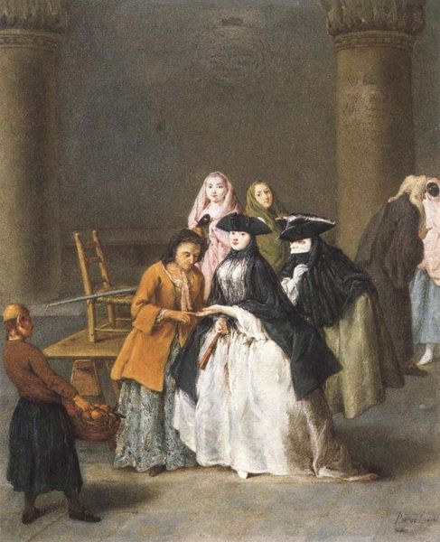 Pietro Longhi's "The Charlatan" was made with oil on canvas. The scene is a window into 18th-century Venetian life, rendered with an eye for detail and social commentary. Longhi has captured a moment of performance and spectacle. The charlatan, elevated on a makeshift stage, hawks his wares, while onlookers gather, their expressions a mix of curiosity and skepticism. The use of oil paint allows Longhi to capture the textures of clothing, from the shimmering silks of the wealthy patrons to the rougher fabrics worn by the common folk. Look at the rendering of the lace, the velvet, and the sheen of skin – all achieved through careful layering and blending of pigments. The painting, in its detailed depiction of everyday life, reflects the burgeoning consumer culture of Venice. It blurs the lines between the artwork and the society it depicts. The act of painting itself becomes a form of social commentary. Longhi’s skill in capturing these details elevates the genre scene to a form of social critique, revealing the dynamics of class, commerce, and spectacle that shaped Venetian society.