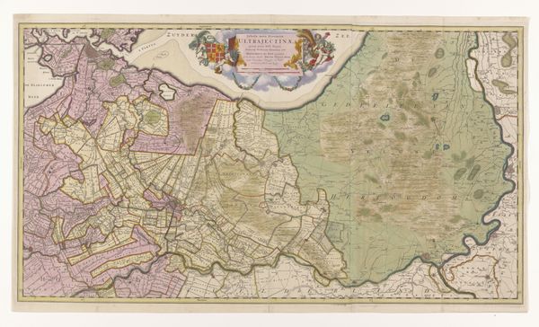 Editor: This print, “Kaart van de Zeventien Provinciën,” or “Map of the Seventeen Provinces,” dates from sometime between 1656 and 1663 and is by Abraham Jansz. Deur. It’s an engraving, so pretty intricate in its detail. What I notice most is how… overtly celebratory it seems, what with all the flourishes and allegorical figures around the edges. What story is it trying to tell? Curator: That's a great observation! The decorations are key. Remember, maps in this period weren’t just about geographical accuracy, but also about political messaging. These allegorical figures around the title – what do they seem to represent? Editor: Well, there’s wealth on one side, I think – with what looks like cornucopias? And the figures on the other side...Justice? It's all very stately, very self-assured. Curator: Precisely! The map presents a vision of the Seventeen Provinces – roughly today’s Benelux countries – as a unified, prosperous, and virtuous entity. Now consider the date. The Dutch Republic was newly independent, but also enmeshed in wars and political maneuvering. What role do you think this image of unity played within that context? Editor: Ah, so it's less a neutral depiction and more of a piece of propaganda! Showing everyone how strong and together they were, despite, or maybe even *because* of, all the conflict? Curator: Exactly! The “accuracy” of the map isn’t simply about place names, but about projecting power and legitimacy. Maps like this were crucial tools in shaping a shared identity and solidifying the Republic's position on the world stage. Editor: Wow, I never thought about a map as having such a loaded agenda! I guess everything has a point of view. Curator: Precisely, and understanding the politics of imagery, then and now, is fundamental to understanding history. Thanks!