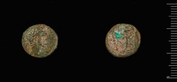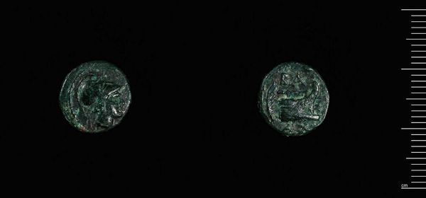 Editor: Here we have an artifact titled "Coin Struck at Athens for the Cleruchs at Delos," issued by the Cleruchs of Athens. Given its age, the worn texture creates an intriguing aesthetic. What do you see when you look at this piece? Curator: The worn texture you noted is quite interesting. Observe the circular form and the bas-relief imagery. How do you interpret the relationship between the corrosion and the legibility of the imagery? Editor: I see that the corrosion makes it harder to discern the images, but also adds to its character. Would it be better preserved without the texture? Curator: Perhaps, but the texture speaks to its history as a material object. Consider how the interplay of form and surface contributes to the coin's aesthetic value, beyond its function as currency. Editor: I understand. So, the value lies in appreciating the coin as it is, texture and all. Curator: Precisely. The formal elements speak volumes about its enduring presence.