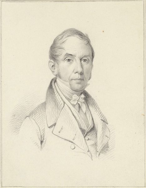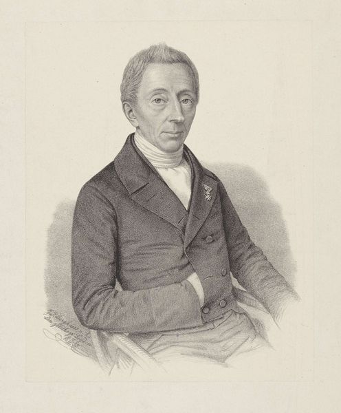 This is a lithograph of Jan Wouter Felix, made by Johann Peter Berghaus, around the mid-19th century. Lithography is a printmaking process that relies on the simple principle that oil and water don't mix. The artist draws an image on a flat stone or metal plate with a greasy crayon, then treats the surface so that ink will adhere only to the drawn areas. The printmaker then dampens the surface with water, applies ink, and presses the image onto paper. The subtle gradations of tone in this portrait, achieved through careful shading and hatching, speak to Berghaus's mastery of the technique. The fine lines of the lithograph capture the texture of Felix's clothing and the details of his face. The lithographic process allowed for relatively quick and inexpensive reproduction, making images like this accessible to a wider audience and contributing to the rise of visual culture during the 19th century. Lithography blurs the line between art and industry, and reminds us to consider the social and economic context in which art is produced and consumed.