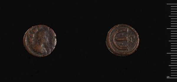 Curator: This is a coin of Antiochos II Theos of Syria, likely minted in Sardis. Editor: The patina is striking, a testament to its age, and the low relief suggests significant wear from circulation. Curator: Absolutely. Coins like this were not simply currency; they were tools of political messaging. The image of Antiochos on one side served to reinforce his power and legitimacy. Editor: And the stylized depiction of the animal on the reverse? Is it a bull, perhaps? It's cleverly rendered within the coin's circular form. Curator: It's understood to be an important regional symbol, possibly connected to fertility cults or local deities. Coins served as a powerful method to disseminate imperial iconography while subtly integrating local cultural symbols. Editor: A fascinating fusion of visual elements, indeed, that embodies the artistic constraints and political intentions of the time. Curator: It provides a glimpse into the complex social dynamics of the Hellenistic world. Editor: A tiny object, yet it holds so much history.