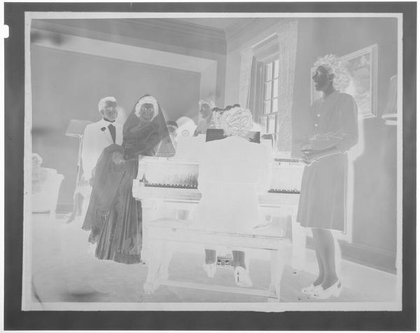 Editor: This is an untitled gelatin silver print by Jack Gould, depicting a judge and other men. It feels very staged, almost like a tableau. What do you make of this image? Curator: It's interesting how Gould positions the figures. It feels like a commentary on power structures, doesn’t it? The judge is central, but the others seem to be performing roles for an audience. Editor: So you think the staged quality is intentional, highlighting the performative nature of law and justice? Curator: Precisely. It makes you wonder who the intended audience was, and what Gould was trying to say about the institutions represented. Editor: It makes me think about the accessibility of justice, who it's really for. Curator: Yes, it's a powerful image that uses its artificiality to raise very real questions about the social function of law.
