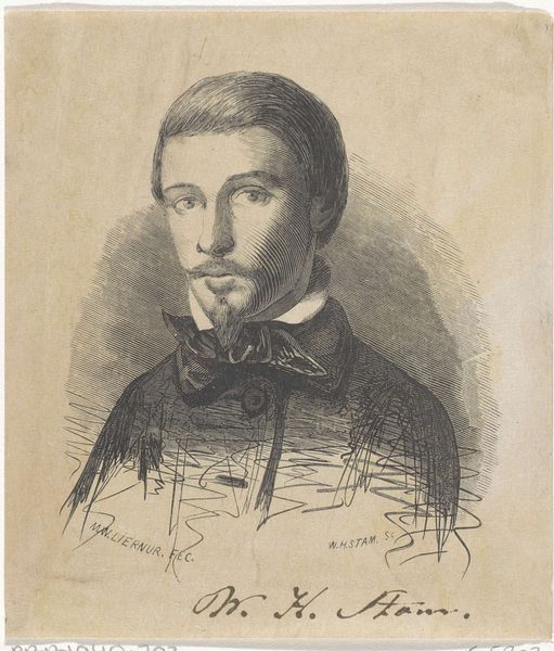 Editor: This is a pencil drawing titled "Portrait of the Artist's Brother, H.P.N.K Kóbke (1812-39)," made by Christen Kóbke sometime between those years. There's an intensity to the gaze of the subject, almost challenging the viewer. What stands out to you about this work? Curator: I am immediately struck by the rendering of the eyes; Kóbke captures a subtle vulnerability alongside a self-assuredness, a duality common during the Romantic era. Note how the light catches the subject’s gaze. The eyes serve as windows into the soul, don’t they? The soft rendering adds a sense of depth and humanity. Editor: Absolutely. And the details in the clothing – the striped vest and bow – hint at a specific social status. Curator: Precisely! Clothing here serves as more than mere covering; it’s an indicator of cultural identity and perhaps even aspiration. What do the soft lines of the bow tie suggest to you? Editor: A certain elegance, maybe a cultivated image. Was this a common way to portray oneself? Curator: Within the confines of Romanticism, which emphasized individualism, portraying one's best self certainly held value. Think about it: drawings such as these allowed for the construction of personal narratives beyond words. The slight asymmetry lends a degree of naturalism that might otherwise be lost with idealized formality. The goal was authenticity in self-expression. Editor: So, it's less about flawless representation and more about capturing the essence of a person in a specific time. I never thought about portraiture in such narrative way. Curator: Indeed. Kóbke provides not just a face, but a symbol imbued with feeling. Editor: Thank you for broadening my understanding. It will be exciting to see other images with this viewpoint.