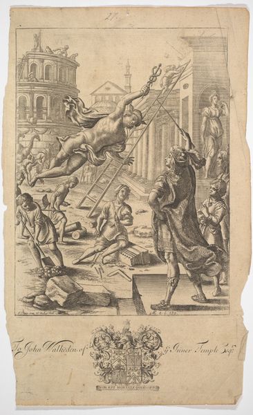 This engraving of Minerva with banner and shield was created by Pieter van (I) Call, likely in the Dutch Republic. The figure of Minerva, Roman goddess of wisdom and strategic warfare, would have resonated deeply in the cultural landscape of the time. Made during the early 17th century, it is a period marked by the Dutch struggle for independence from Spain. The visual codes here speak of that struggle. Minerva, often associated with justice and liberty, carries a banner with text relating to Admirable Encomia. This choice of subject subtly aligned the Dutch cause with classical ideals, framing their rebellion as a noble pursuit of freedom and enlightenment. The shield may have been a reference to the battles being fought at the time. The existence of the printing house, 'Ex Typographejo REINERI SMETII', from which this print originates, also highlights the growing importance of print culture in shaping public opinion and disseminating ideas. For historians, sources such as pamphlets, political tracts, and emblem books become crucial for understanding the complex interplay between art, politics, and society during this transformative period.