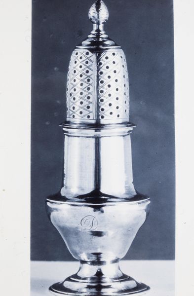 Curator: Eduardo Paolozzi created this untitled print; its dimensions are approximately 298 x 210 mm and it resides in the Tate Collections. Editor: There's something haunting about this bottle image. The stark monochrome palette really highlights the detail. Curator: Consider how Paolozzi repurposes commercial imagery. The bottle, a common consumer object, becomes a canvas, reflecting post-war anxieties. Editor: The vertical lines create a sense of confinement, almost like a cage for the figure within. The interplay between light and dark is especially striking. Curator: He explores printmaking, challenging traditional notions of art production and value. What were the societal implications of elevating such quotidian material? Editor: Ultimately, I find that Paolozzi uses form and content in perfect balance. Curator: Indeed. This image prompts deeper questions about art's relationship with industry and the everyday.