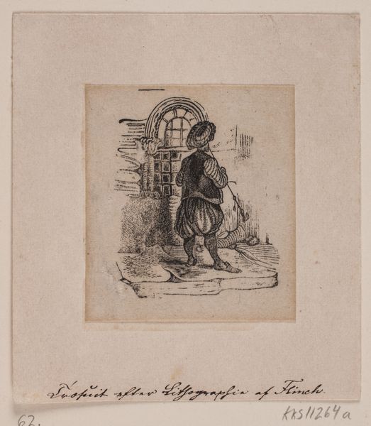 Editor: Goya’s etching, "And This Is Why His House Burns," is rather unsettling. The figure's almost gleeful expression as his dwelling goes up in flames is disturbing, isn't it? What do you make of this peculiar scene? Curator: It’s darkly comic, right? Goya had a knack for skewering human nature. Perhaps he's highlighting our capacity for self-destruction, or maybe it’s a commentary on societal madness. Have you noticed the grotesque exaggeration of his features? It's like a twisted caricature. Editor: Yes! It's almost as if he’s amused by it all. So, it's less about the literal fire and more about a deeper societal critique? Curator: Precisely. Goya often used the grotesque to expose uncomfortable truths. The fire becomes a metaphor, a symptom of something far more rotten. And who knows? Maybe Goya felt like setting fire to a few things himself. Editor: I suppose we all have those days. Thanks for shedding light on this rather fiery piece!