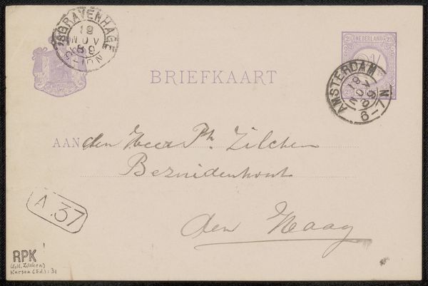 Editor: Here we have Fenna de Meyier's "Briefkaart aan Philip Zilcken," potentially from 1915, crafted with ink on paper. The script has a beautiful, elegant flow. What catches your eye when you consider this piece? Curator: As a historian, I find this object fascinating because it reveals the social networks of artists during a turbulent time. This isn't just a piece of calligraphy; it’s a document that speaks to artistic patronage and communication amidst the backdrop of World War I. How do artists like de Meyier maintain their practice, their visibility, and support during a war? Consider Zilcken’s role – was he a patron, a fellow artist, a critic? The "Briefkaart," the "postcard" itself, becomes a vital, material link. Editor: That's a very insightful perspective! I was focused on the aesthetics. What does the handwritten aspect convey beyond just the practical information of a postcard? Curator: Precisely. The *hand*, not mechanical reproduction, offers a glimpse into the persona. The very act of sending this, carefully penned, reflects a social value. Calligraphy, especially in a pre-digital age, indicates a certain education and refinement. Did Zilcken save this piece? Its preservation, even survival, then becomes its own cultural narrative. Why save *this* card? Editor: So it's less about the individual words, and more about the gesture and its place in that moment and afterward? It makes me wonder what the front of the postcard looked like, what image it carried and whether its combination with this text adds additional or contrasting meaning! Curator: Exactly! The front of that postcard could offer further hints. Considering all these tiny aspects gives a larger, broader perspective of its purpose. And, perhaps it speaks to the very nature of artistic dialogue throughout history. Editor: That shifts my thinking quite a bit. Thanks! Now I’m seeing more than just beautiful handwriting.