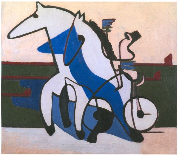 Ernst Ludwig Kirchner made this painting of a horse and cart, probably in Germany, with oil on canvas, but when? There’s a kind of directness and a rawness in the brushwork that makes it feel immediate, like a snapshot of a moment. The blue shadows define everything – they give weight to the horse, solidity to the cart, and even shape the features of the driver's face. See how the cool blues contrast against the warmer greens and browns, creating a sense of depth and movement. The paint is applied in these visible strokes, they’re not trying to hide the process. I keep coming back to the horse’s head, with its simplified form and that intense gaze. It feels like Kirchner is really trying to capture the animal’s essence, reducing it to these essential lines and planes. It reminds me a bit of some of the Fauvist painters, like Vlaminck or Derain, who were also interested in using bold colors and simplified forms to express a raw, emotional response to the world. It's like a conversation between artists happening across time and space.