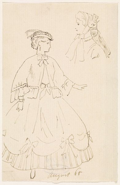 Editor: Here we have Bernard Picart’s "Vier vrouwenhoofden in verschillende standen, met fontange" from 1703, a pen and ink drawing on paper. I find the sketch-like quality really appealing, it’s like peeking into a fashion designer's notebook. What captures your attention in this piece? Curator: It's fascinating to see how Picart, through the very act of sketching these heads, engages with the booming fashion industry of the time. Notice the emphasis placed on the fontange, that towering headdress. Its production and consumption involved entire networks of labor, from the lacemakers to the merchants distributing them across Europe. These weren’t just aesthetic objects, they were potent symbols of social status sustained by complex systems of material production. Editor: So, it's not just a pretty drawing of some ladies, but a reflection of the socio-economic landscape? Curator: Precisely. Think about the material properties of ink on paper, the relative ease and speed of creating this image compared to, say, an oil painting. This allowed Picart to disseminate visual information about fashionable commodities more efficiently. These images shaped desire and fueled consumer demand. What kind of labor do you think was necessary to create such a headdress? Editor: I imagine it would involve specialized skills. And, depending on the materials, global trade routes? Curator: Exactly! The lace, the wire supports, even the pins holding it all together, each speaks to a story of labor and trade. The drawing makes them seem almost effortless, but behind the image, there is an economy and extensive work involved. Editor: That's given me a completely new perspective. I'll never look at fashion plates the same way again. It makes you consider who made all this possible! Curator: Indeed. By looking closely at the materials and processes involved, we gain a richer understanding of art’s relationship to society and its structures of power.