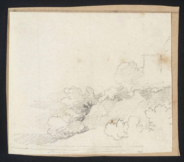 Curator: Ah, this landscape feels…empty, in a way that intrigues me. Stark. It’s a spread across two pages, giving it this strange intimacy, as though we’re looking over someone’s shoulder at their personal vision. Editor: You know, intimacy is interesting here because landscape art can have an impact related to power. So this image from around 1808 to 1857 depicts "Berglandschap met meer te Latium," or "Mountain Landscape with Lake in Latium," a pencil and watercolor drawing by Abraham Teerlink. The choice of Latium places it in a complicated legacy within art history, referring to the establishment of Western art and imperial grandeur. But I do wonder, is this an assertion or a subtle critique? Curator: That tension between grand vision and intimate experience, I think that's really there. Looking at the layers of light pencil lines, almost a whisper of color, gives this fragile effect like it might blow away. The artist really capturing the delicate details, while only suggesting a broader scene, inviting us to wander the paths that connect nature and identity in a very immediate and personal way. It makes me wonder: what meaning can we ascribe to such an elusive representation of power? Editor: Exactly, especially within the tradition of landscape art. By centering Latium in the frame, it demands an examination of that space's political and aesthetic power. If this work serves as a direct commentary or reinforcement of traditional imperial landscape depictions, particularly during the post-colonial periods, seems more vague in Teerlink's handling. The understated nature, if anything, seems to reject grandeur in favour of a sort of observational naturalism. Curator: Precisely! I see it as a way to embrace an almost proto-photographic style – where the imperfections become almost integral to how the image conveys feeling, making this seem less like a finished assertion and more like…a lived moment. So the questions it leaves me with are, where did Teerlink do this piece and for what end? Is it part of an exploratory sketchbook or a statement on power? The uncertainty is wonderful. Editor: I appreciate your perspective on that. And what resonates with me is the reminder of art’s role in negotiating cultural and social dynamics, its historical memory as we explore. The dialogue is continuous, right? It persists throughout time.
