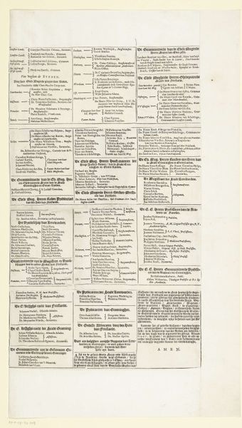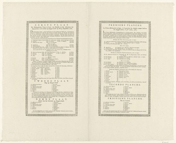 Curator: This…it’s a list. "Namenlijst van leden van de Amsterdamse comités, 1795," or a list of names of members of the Amsterdam committees, from, well, possibly 1795. It’s a printed document, presumably meant for wide distribution. The Rijksmuseum holds it now, but it clearly had a different life then. Editor: It seems pretty straightforward: dense typography on aged paper. My first thought is how…public it is, in a way. Like civic duty made visible. What strikes you about it? Curator: "Civic duty" is a fascinating lens. Look at the historical context: 1795, the Batavian Revolution. This wasn't just paperwork; it's a statement of political belonging, a documentation of individuals actively participating in reshaping their society. Editor: So it's not just a list, but a political declaration? How would people in that era look at a document like this? Curator: Absolutely. Imagine seeing your name – or your neighbour's – on this list. What would it signify? Social advancement? Support for the changing political order? Or possibly, a dangerous vulnerability, depending on which side you were on prior to the Batavian Republic being founded? Do you think there might be those left out by this printing, who could not have their names listed? Who were included in these comités, and who was systematically excluded? Editor: I hadn’t considered that. Seeing it as a historical artefact, I didn’t think about who was deliberately missing. That changes the tone completely. Curator: Exactly. It urges us to question power dynamics and visibility. This isn't just names; it’s a snapshot of a society grappling with revolution and the very definition of citizenship, and how printing served to actively include or exclude citizens. Editor: That's made me rethink how even seemingly simple documents can have such loaded, complex meanings and how even acts like making lists are never truly neutral. Curator: Indeed. By interrogating these layers, we uncover not just history but the ongoing dialogues around belonging, identity, and the enduring relevance of these debates today.