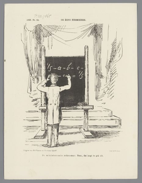 This political cartoon was created by Johan Michaël Schmidt Crans in 1874. It is made using ink on paper, a traditional method for creating prints that allowed for mass production and distribution. The linear quality of the printmaking process lends itself to caricature, emphasizing the contours of the carriage, the waiting horses and the figure with a whip. The artist used the reproducibility of this medium to make a statement about the political landscape. There is a clear link to the social context of this cartoon, and it has been made accessible to a wide audience through printmaking. The artist uses labor as a visual metaphor for social issues, as the image alludes to the delay of a new ministry, and questions when the government will start driving again, like a coachman with a horse and carriage. This artwork is a great example of how materials and making are central to understanding the full meaning of an artwork, challenging the traditional idea of fine art and craft.