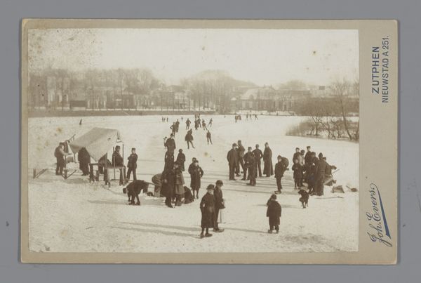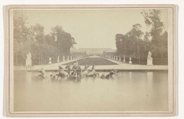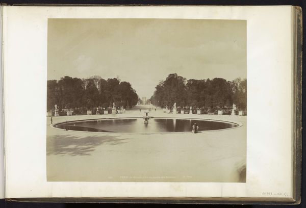 Editor: This is Giacomo Brogi's "Weg door het Parco delle Cascine te Florence", taken sometime between 1864 and 1881. It’s a sepia-toned photograph, quite muted and soft. There’s a hazy, almost dreamlike quality to it. What stands out to you about this photograph? Curator: I think its significance lies in how it captures the burgeoning concept of leisure and public space in Florence during that period. It isn't just a pretty picture, but an index of social and political changes. We see people from various walks of life intermingling in a designed landscape, reflective of the shifting power dynamics. Notice how the trees line the road, almost framing this performance of society. Editor: So the park itself is a stage? Curator: Exactly! Parks like the Cascine became vital sites for civic engagement, a place where the burgeoning middle class could perform their new social roles and participate in a shared national identity after the unification of Italy. Do you notice how Brogi positions the viewer? Are we part of the spectacle or outside of it? Editor: I suppose we're observing, which makes me think about the photographer’s role too. It’s not just a snapshot. Curator: Indeed. Brogi's choice to use photography, then a relatively new medium, highlights its power to document and shape perceptions of this evolving society. Consider how the muted tones and slightly blurred figures contribute to a romanticized view of modern life, obscuring potential social tensions within that picture. Editor: I hadn't considered the romanticizing aspect. So, Brogi's photograph does more than just depict a park. It encapsulates a pivotal moment in Italian social history. Curator: Precisely! The Parco delle Cascine embodies a transformed society in visual terms. Editor: I'll never look at a photograph of a park the same way again! Thanks for enlightening me! Curator: My pleasure. It's these kinds of discussions that help us see art not as isolated objects, but as reflections of the world around them.