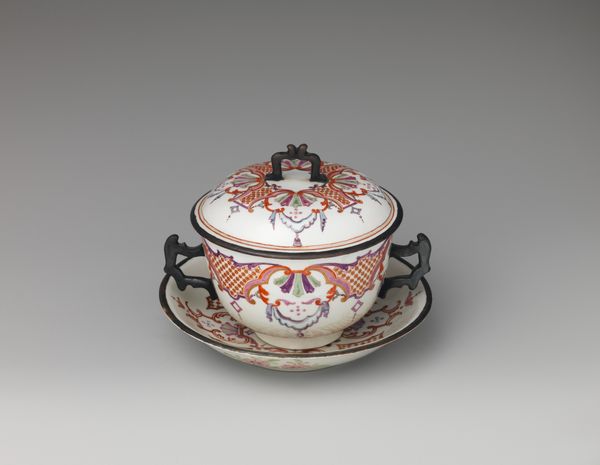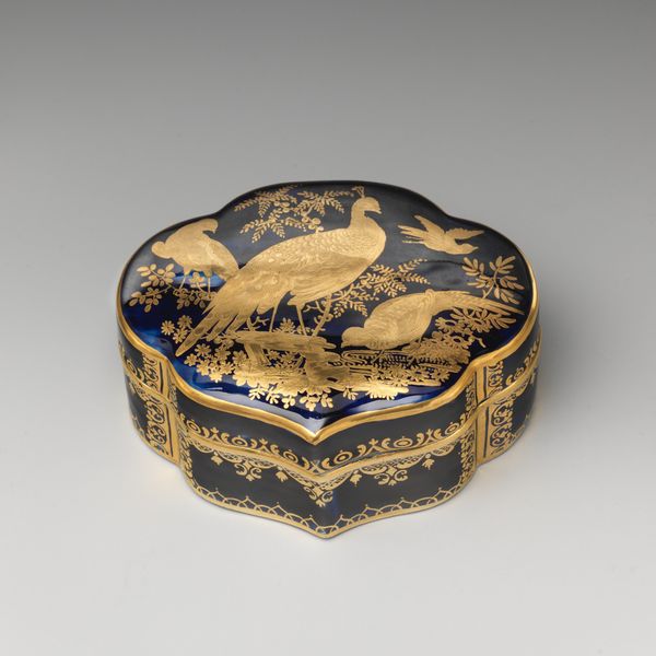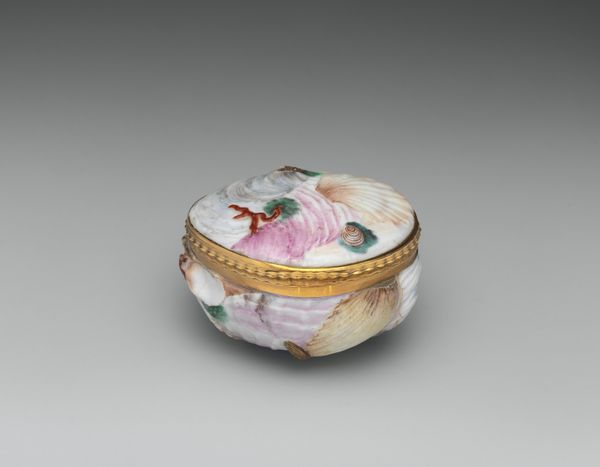 This snuffbox was made in Vienna out of ceramic and metal. Snuffboxes were a common accessory for the fashionable elite, but this one stands out for its delicate construction and intricate ornamentation. The process of making such an object would have been highly specialized. First, the ceramic form would have been shaped and fired. Then, the painted decoration was added, demanding precise brushwork and a keen understanding of color. Finally, the metal hinges and clasps, probably brass, would have been meticulously fitted to ensure the box opened and closed smoothly. The combination of materials and processes speaks to a culture that valued both artistry and utility. Snuffboxes like these blurred the lines between craft and fine art, reflecting the social status and taste of their owners. The skilled labor required to produce them also provides a glimpse into the social fabric of the time, one where makers played a vital role in shaping the material world.