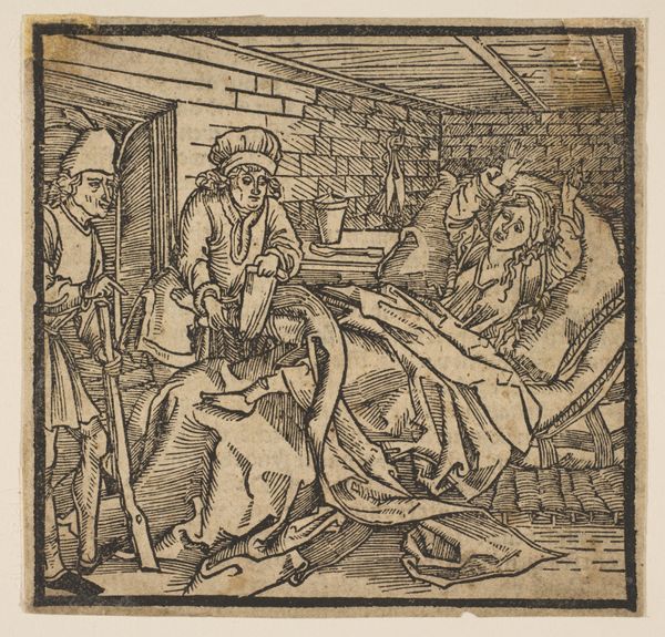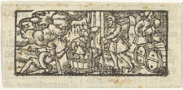 This anonymous woodcut titled 'November' encapsulates the spirit of its age. Made during the 16th century in Europe, most likely Germany, its stark imagery reflects a society grappling with shifting religious, political, and economic realities. The scene captures the essence of late autumn. Indoors, peasants are represented engaged in the activities specific to the month. In the bottom left corner, we can observe three salterns representing November's Zodiac sign: Sagittarius. During the Reformation, the Catholic Church's influence was waning and art began to reflect everyday life, often focusing on the working classes. Woodcuts like this made art accessible beyond the elite circles who commissioned paintings. They served as visual tools for the spread of ideas. Understanding this woodcut requires historical research. Investigating the printmaking practices of the era, the cultural symbolism of seasonal imagery, and the socio-economic conditions of the peasantry would open it up to richer readings. The art is not created in a vacuum.