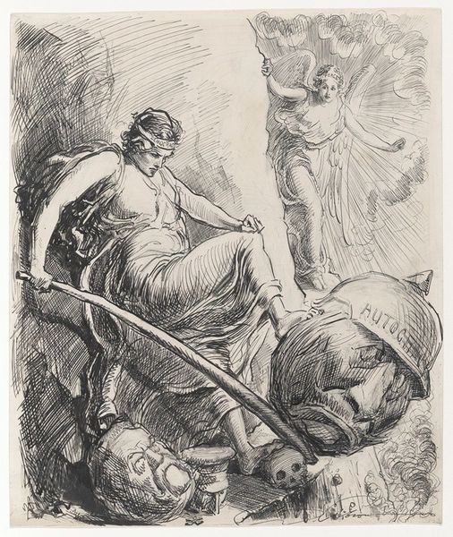 Giovanni Domenico Tiepolo created this print, "Heilige Johannes Nepomuk wordt verdronken in rivier Moldau," which translates to "Saint John of Nepomuk being drowned in the Moldau River," using etching. Tiepolo invites us to contemplate the historical and cultural context surrounding the martyrdom of Saint John of Nepomuk. Set against the backdrop of religious and political conflict, the print depicts the saint's murder. But let us look at this image through the lens of power and resistance. The looming figures of the assailants, one raising a stone, embody the oppressive forces at play, while the serene expression of Saint John suggests a spiritual defiance in the face of death. The emotional depth of Tiepolo's work resonates even today, reminding us of the human capacity for both cruelty and grace in times of adversity.