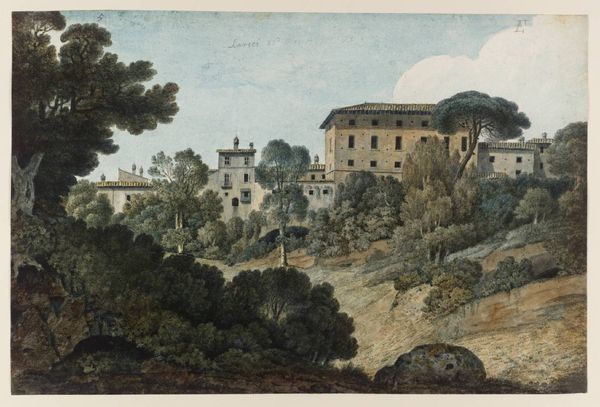 Curator: This is John 'Warwick' Smith's "Port of Vietri," held in the Tate Collections. Editor: It gives off such a feeling of quiet solitude—the muted tones, the way the architecture blends with the landscape. Curator: Smith was a prominent figure in the British picturesque movement. These kinds of scenes catered to the era's fascination with landscape and travel. Think about the Grand Tour and its influence. Editor: Right, but observe how the artist uses delicate watercolor washes to render light and shadow. It’s the composition, that careful balance between the built environment and nature, that truly captures my attention. Curator: It’s worth noting the lives of the figures he includes on the beach. How might their labor and relationship with the port inform our understanding of this idealized view? Editor: Interesting. For me, it’s more about how Smith's arrangement of forms and colors create a harmonious whole. Curator: A beautiful landscape, and a testament to the social forces that shaped its creation. Editor: Indeed, a subtle dance of color and form.