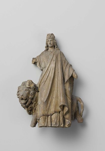 Eugène Lacomblé created this small statuette of Pallas Athene in the 19th century, using terracotta. Terracotta, meaning "baked earth" in Italian, is a humble material, and its presence here is significant. The rough texture of the clay gives a tangible, earthy quality to the goddess of wisdom and warfare. Lacomblé likely built the figure by hand, perhaps using molds for the basic form, then adding details while the clay was still wet. You can see the marks of his tools. The firing process would have transformed the pliable clay into a permanent, hardened state. While marble or bronze might have been considered more prestigious materials for such a subject, the choice of terracotta speaks to a different set of values. It emphasizes the human touch and the directness of the making process. It also democratizes the image of Athene, bringing her down to earth, so to speak. Looking closely at the materials and processes of art making allows us to appreciate the skill and intention involved, challenging conventional hierarchies of value.
