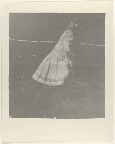 Editor: Here we have a photograph by Harry Annas, simply called "Untitled (girl posing outside, in front of fence, winter)." It has a ghostly feel. What catches your eye in this piece? Curator: It’s as if a memory is being developed before our very eyes, isn’t it? The girl, almost floating against the stark winter scene... it makes me think about the fragility of moments and how photography tries to hold onto them. What do you make of her pose? Editor: She seems confident, but also a little vulnerable, maybe? Like she's trying to be brave against the cold. Curator: Precisely! The fence behind her almost becomes a stage, and she, the performer. It reminds us that even seemingly candid moments can be carefully constructed. Editor: That's a good point. It makes you wonder about the story behind the photograph, doesn't it? Curator: Absolutely! It’s the beauty of these small, quiet moments captured. Always more than meets the eye.