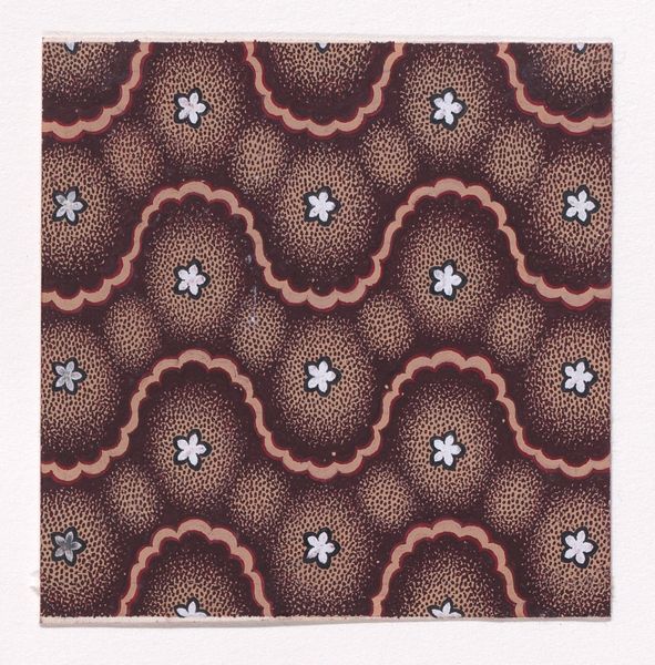 This textile design with cloud-like figures and pearls was made by an anonymous artist. The lack of information on its date and authorship speaks volumes about the institutional history of art. The image is a dense pattern of cloud-like forms in shades of brown, each adorned with tiny dots, suggesting rain. The pearls are evenly spaced and add a touch of luxury. The design could have been influenced by cultural attitudes toward nature, status symbols, or economic structures related to trade in textiles or pearls. As scholars, we can investigate period designs, trade routes, and social customs that are related to dress codes to understand its cultural and historical context better. Without knowing the exact period and place of origin, it is hard to say whether the artwork is progressive or conservative. The use of natural motifs could reflect the period's views on nature and society. Historical and cultural research is crucial in interpreting works of art like this. Investigating this piece further, we can uncover its position within the broader history of textile design and reveal its significance as a cultural object.