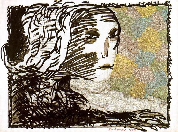 Curator: Here we have an untitled self-portrait drawing by Zdzislaw Beksinski. The medium appears to be ink, sketched with frantic, swirling lines. Editor: My initial response is unease. The density of dark ink around the face creates a disturbing effect, obscuring rather than revealing. It's as if the artist is grappling with some internal struggle. Curator: Beksinski's work is often interpreted through the lens of his personal life and the political climate of Poland under Soviet rule. This self-portrait is stylistically aligned with expressionism, but its raw intensity distinguishes it. He rarely titled his pieces, inviting subjective interpretations, freeing the artwork from specific cultural interpretations and expectations. Editor: Exactly, the lack of a title reinforces this feeling of universal angst. You can consider it within an Eastern European historical framework, yet its visceral impact transcends such literal interpretations. It brings to mind the writings of Kristeva on abjection - a confrontation with what disturbs identity. The piece evokes powerful themes of trauma, both personal and political. Curator: Beksinski preferred listening to classical music while creating his dystopian pieces. It created an emotional landscape from which these images emerged, connecting personal feelings with broader social contexts, creating imagery that would provoke powerful responses in his viewers. The heavy application of dark ink in the drawing contributes to this effect, reflecting Beksinski's internal state and engaging in artistic activism. Editor: It's fascinating how his engagement with form and line—or really the disintegration of those things—reflects a fractured self. This isn't a straightforward likeness; it's an excavation of the darker aspects of being. And as a piece of self-portraiture, it makes a powerful, unsettling statement about how identity is shaped by internal torment and sociopolitical pressures. Curator: The work really challenges us to consider the museum’s responsibility in displaying intensely personal, possibly triggering imagery, to a broad public audience, ensuring sensitive and thoughtful curation. Editor: I agree. Its strength lies in how it compels us to face our own vulnerabilities and anxieties as humans navigating a complicated, sometimes hostile world.