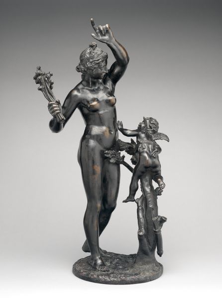 This bronze sculpture of a Satyress with vase was made in Padua, Italy, around the early 16th century by Andrea Briosco, called Riccio. Bronze is an alloy primarily of copper, usually with tin as the main additive. These components would have been heated to a high temperature and poured into a mold using the lost wax method. After the metal cooled, the mold would have been broken away. This process would allow for the creation of highly detailed, durable forms. The smooth surface of the bronze allows the form to shine, with its brown color imbuing the figure with warmth and vitality. The material is suited to the classical subject, a mythological creature that is half-human, half-animal. The making of a bronze figure like this would have required a team of artisans, each with specialized skills. The statue represents a culmination of technical knowledge, artistic vision, and skilled labor. When we appreciate the artistry of this work, we are acknowledging these historical methods and social context, seeing beyond established boundaries of art and craft.