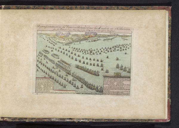 Editor: This is a 1735 print in colored pencil called "Beschieting van Limbourg door de Geallieerden, 1703," attributed to an anonymous artist. It seems to depict a town under siege, or perhaps just after a battle. The colors are quite muted, lending a somber air. What do you make of this scene? Curator: It’s a fascinating piece, especially considering the context of its creation, more than thirty years after the depicted event. Do you notice how the scene is rendered not as a romantic battle, but almost as a map, a dispassionate survey? Consider the act of remembrance here: What purpose does this visual record serve? Editor: I hadn't thought of it that way, as a map. It almost feels like a historical record or document, but with these delicate, almost whimsical, colors. Curator: Exactly. The 'whimsical' colors serve a mnemonic function; they imprint the image, making it emotionally accessible for contemporaries and successive generations. This kind of visual shorthand builds a shared understanding. Are you familiar with other symbolic maps that shaped a nation’s or culture's memory? Editor: Not off the top of my head, but that makes me want to research that further. I guess I was initially drawn to the quaintness of it, but now I see the deeper implications of its imagery. Thanks! Curator: It is a testament to how even seemingly straightforward images can become powerful cultural artifacts by embodying complex historical and cultural meanings. An apt lesson for us both!