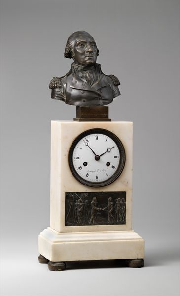 This bronze and gilt mantle clock is a striking testament to the Neoclassical period. The contrast between the dark patinated bronze of the draped female figure and the bright, reflective gilt surfaces creates a dynamic play of light. Notice how the figure’s posture – leaning thoughtfully on a stack of books atop the clock case – introduces a humanistic element. The clock face itself, a simple white disc with Roman numerals, is framed by elaborate gilded ornamentation. Below, a frieze of playful putti adds a sense of movement and levity, balancing the statue's solemnity. The clock's structure speaks to a semiotic interplay between time and knowledge. Timekeeping, with its emphasis on precision and order, meets the classical association of wisdom and learning, suggesting that time is best spent in thoughtful contemplation. This ornate clock destabilizes the very concept of time from a mundane reality to a philosophical pursuit.