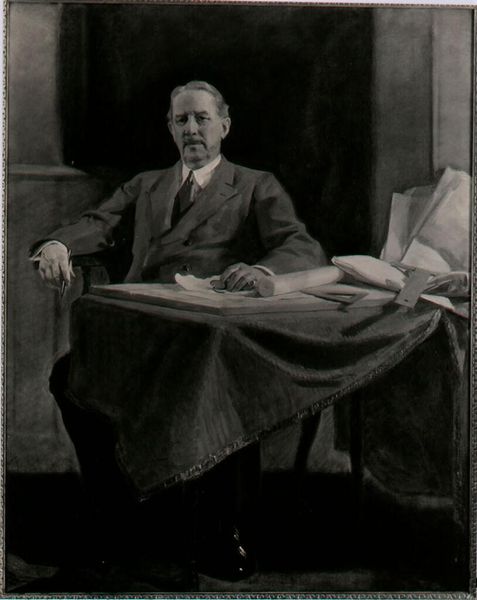 Curator: This is Nicola Perscheid’s 1904 photograph, “Julius Rodenberg,” rendered in striking black and white. It's quite an arresting portrait, isn't it? Editor: Absolutely. I'm immediately struck by the man's gentle, almost wistful expression. It's juxtaposed with a certain formality, a kind of quiet confidence emanating from him. There's a stillness. Curator: And indeed, Rodenberg was a significant figure. As a Jewish German poet and literary historian, Rodenberg also founded the literary journal "Deutsche Rundschau." Given his immense contribution to the 19th century German literature scene, the portrait offers more than meets the eye. Editor: It begs us to consider the prevailing cultural narratives during this specific period. Looking at this photograph today, I find myself reflecting on questions surrounding representation, especially considering the identity of Jewish intellectual and his position within the German literary scene at the turn of the century. It’s a powerful visual reminder of intersectionality. Curator: You’re so right to bring that up. Perscheid was one of the most renowned portrait photographers of his time. One of the ways in which Perscheid broke new ground was by working with artificial lighting, lending a remarkable nuance to his black and white work. That choice certainly seems deliberate. Editor: Yes, the lighting does contribute to this rather haunting and melancholy affect. It brings a complexity to Rodenberg, acknowledging the various facets of the man: the accomplished poet, the Jewish intellectual in a society marked by growing antisemitism. The framing, too, the softness of the focus – it seems designed to evoke empathy, to create an intimate space with the viewer. It definitely opens up questions regarding Jewish intellectual life in Europe in that era. Curator: Looking at how it complicates notions of identity in that period really amplifies the work's resonance. Editor: Indeed, It certainly complicates conventional approaches to historical portraiture. I'll definitely be pondering the context of its making, given our conversations.