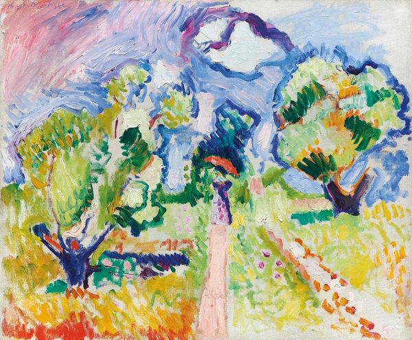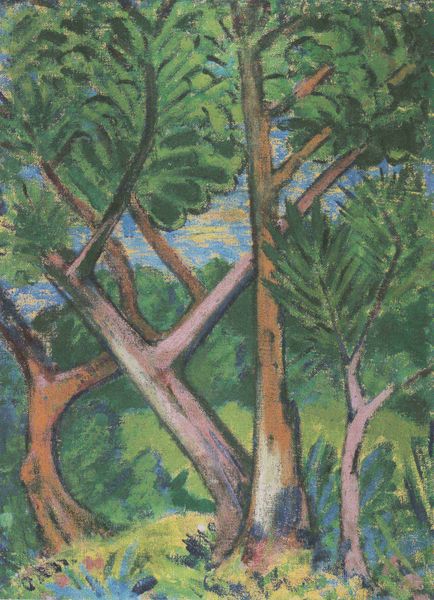 Otto Mueller made this painting of a woodland, most likely in Germany, with oil on canvas. Look at how he lets the paint sit on the canvas, scrubbed in, almost like a stain. You can feel the physical presence of the paint. It's not trying to trick you into thinking it's anything other than pigment on a surface. See the way the paint is built up on those tree trunks, especially the yellowish one that leans in toward the center of the frame? The color isn't blended smoothly; instead, he lets different shades sit next to each other, creating a textured, almost sculptural effect. Mueller was part of Die Brücke, a group of expressionist artists, and you can see some of that raw emotion in the way he handles the paint. It’s as if he's wrestling with the canvas, trying to capture not just what the forest looks like but how it feels to be in there, surrounded by all that life. It reminds me of the work of Emil Nolde, who had a similar way of using color and texture to evoke feeling. Ultimately, it shows us that art doesn’t need to be photorealistic to be real.