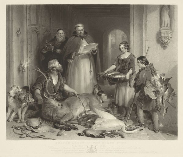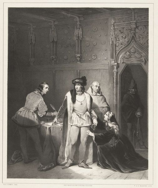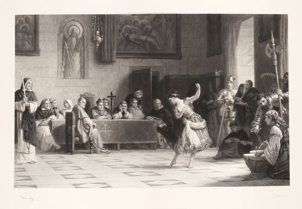 Adolphe Mouilleron rendered this image of Leonardo da Vinci's death in print. Note the prominent display of candles and a crucifix, symbols deeply embedded in the ritual of death, representing light in darkness and the hope of salvation. Consider the repetition of the dying figure supported in someone's arms: a motif that echoes across time. Think of the Pietà, where Mary cradles the body of Christ. The gesture transcends its immediate context, speaking to universal themes of loss and mourning. We find versions of it in countless artistic expressions, each carrying the weight of past iterations, resonating with our collective memory. This scene, imbued with the somber atmosphere of death, connects us to the pathos formula – engaging viewers on a subconscious level. The image becomes more than a depiction of Leonardo's passing; it is a ritualistic performance, resonating with primal human emotions. The pathos transmitted through artistic representation makes visible the inner experience of anguish.