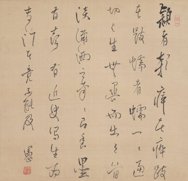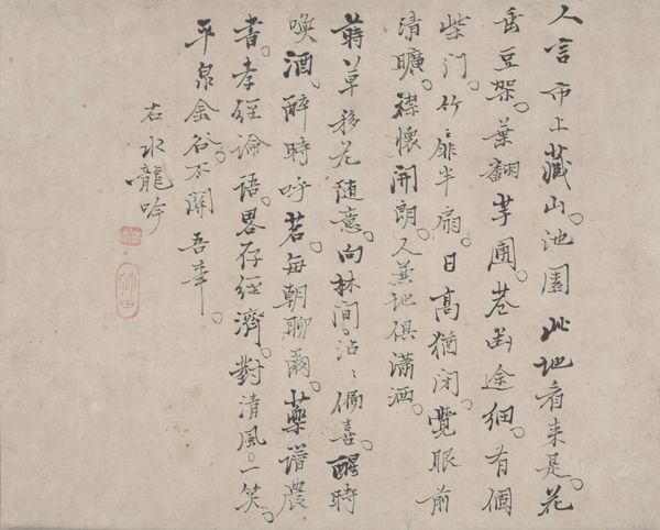 Murase Kōtei created this poem in running script with ink on paper. The characters themselves carry deep symbolic weight. More than mere words, they are ideograms that bridge language and visual representation. Consider the character for 'water'—it evokes the very essence of fluidity and change. We see echoes of this symbolic use of water in other artistic traditions. Water is a symbol that appears again and again in different cultures. In ancient Greek art, for instance, rivers were often depicted as gods, embodying life-giving and destructive forces. This act of writing transcends mere communication. It is a ritual, a dance between mind and hand, where each stroke carries the weight of tradition and personal expression. The dynamism of the calligraphy echoes a constant transformation and adaptation across cultures and time. Like memories surfacing from the depths of the collective unconscious, these symbols resurface, shaped and reshaped by the currents of history.
