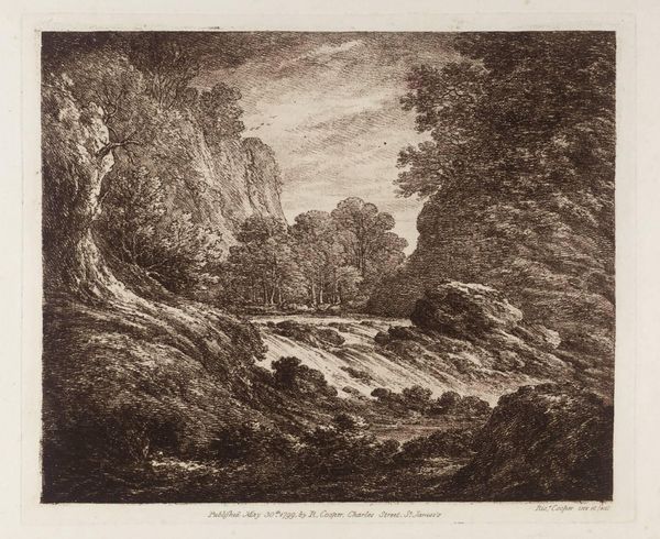 Editor: So, this is Johann Peter Beer’s "Landscape with Waterfall and a Mother and Child" from 1800. It’s a pencil drawing, and it feels very... serene. The detail is incredible for just pencil. What do you see in this piece that maybe I'm missing? Curator: I see the pencil itself as a key component. Think about where pencils came from in 1800 - the extraction of graphite, the labor involved in shaping it, and its availability primarily to the privileged. The "serenity" you observe becomes complex when considered through these lenses. How does the Romantic ideal of nature here become packaged as a commodity? Editor: That's interesting! I was just thinking about how beautiful the landscape is, and the soft way the pencil captures the water... But what you're saying makes me consider the social implications. So, who would have had access to such art supplies and, therefore, this specific visual experience? Curator: Precisely! And where would this drawing have been displayed, and for whom? Was this scene based on first-hand experience or derived from other images circulated within a specific social sphere? The choice of a drawing, over say, a painting, implies different levels of labor and production cost. Who benefits from this idyllic scene? Is it truly "realism," or a constructed image designed for specific consumption? Editor: I hadn't thought of it that way. So, even the seemingly simple medium of pencil connects to broader systems of production and consumption within society at the time? It definitely complicates the surface-level reading of Romanticism and beauty. Curator: Exactly. The very materiality of art opens doors to social critique. Examining process helps to uncover how labor, extraction, and accessibility shape not just the object but its meaning. Editor: I'll definitely look at artworks differently now! Focusing on materials opens up so much to think about, not just the aesthetic surface. Curator: Indeed, recognizing that what's in front of you as more than "just art" helps contextualize it in powerful and nuanced ways.