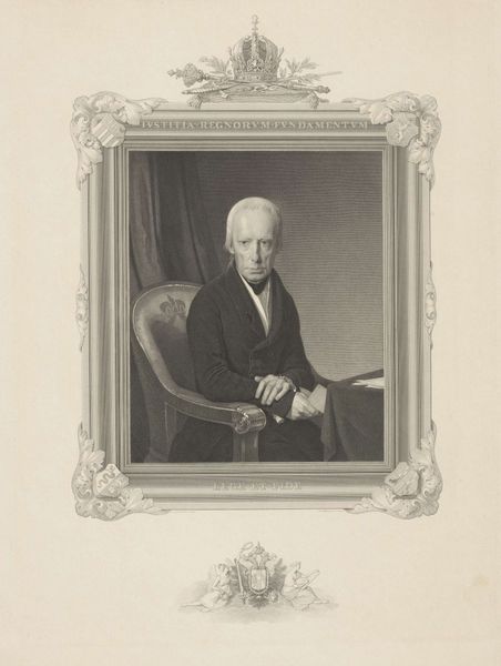 Editor: This is "Portret van Patrick Duff," created in 1791 by Charles Howard Hodges, currently held at the Rijksmuseum. The work is an engraving, and I find its somber tone quite compelling. The way the subject's gaze meets yours is striking. How do you interpret this work, especially given its formal qualities? Curator: Focusing purely on its formal qualities, we observe a strategic use of light and shadow to create depth. Note how the engraver’s meticulous lines delineate form and texture, giving volume to Duff’s face and uniform. The linear precision reflects Neoclassical ideals, evident not just in the subject matter but in its method. Editor: The uniform is what grounds my interpretation - its immaculate detail gives the work a specific identity and authority. It's interesting to see such weight carried in an engraving. Curator: Exactly! This leads us to contemplate the function of line in creating structure. The engraving's composition adheres to classical portrait conventions, but Hodges introduces dynamic tonal variations with sophisticated scratching and stippling. Can we say that the lines give the artwork depth, while at the same time containing the scene within its bounds? Editor: Absolutely. It’s amazing how the lines not only create form, but almost a feeling. Is that Neoclassical influence, too? Curator: Precisely. It reflects the philosophical underpinnings of the era: Reason, order, and clarity, expressed visually through controlled line work. Considering semiotics and these structural elements, the sword might symbolize power, not necessarily aggression. Editor: That's a perspective I hadn't considered. Viewing it from a formalist lens really highlights the depth of even seemingly straightforward pieces. Curator: And that's what's great about a formalist reading. By concentrating on shape and composition and line, a new reading comes into view, even outside of what it represents.
