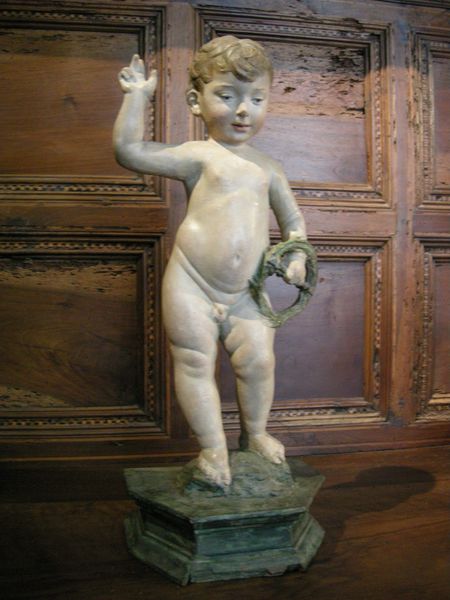 Curator: This delightful bronze sculpture is Giambologna's "Putto Pescatore," dating back to 1562. Isn't it just wonderful? Editor: It's cheeky! Full of vitality and that perfect slightly chubby toddler form, rendered so elegantly in bronze. There’s something both classical and incredibly alive about it. Curator: It's a stunning example of Mannerist sculpture. Notice the playful contrapposto pose, the way the body twists. He’s perched on a dolphin, gripping a broken rod—presumably a fishing rod at some point? Editor: Dolphins…they are the key here, aren’t they? Ancient symbol of rebirth, guide to souls... but also playful, intelligent. Giambologna combines this complex symbolism of human rebirth and guidance, with an almost mischievous childishness, look how playful he is and see how he catches the attention. Curator: Precisely. He has this inherent sense of the theatric – perfectly pitched. And the dolphin almost seems as if it's participating in the game. The sculptor manages to encapsulate a kind of lightness here and combine it to this weighty subject. Editor: And this cherubic figure feels almost like an ancient Roman sculpture rediscovered. Consider, that he could be interpreted as Cupid, who has the potential to cause a sea storm with an uncontrollable childish prank? He's definitely evoking some potent ancient memories! It all circles back to water, renewal. A cultural fountain springing forth! Curator: Nicely put! His work often brings mythological themes to life with a remarkable sense of realism. One might imagine, that this is such a clever allegory for how nature always finds new ways, after, of course, we interfere. Editor: Absolutely. Ultimately, it brings to mind childhood's capacity for both profound meaning and simple pleasure. That Giambologna captured that dichotomy speaks to his talent as an artist. It seems, there's both a beginning and an end to everything; a playful sculpture and a powerful, lasting statement all in one. Curator: Well said! Thank you. Editor: Thank you.