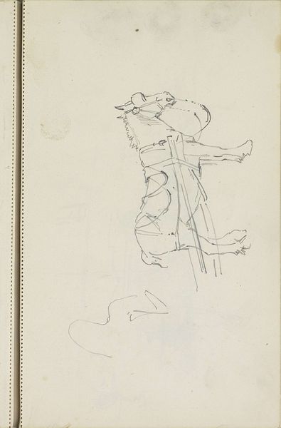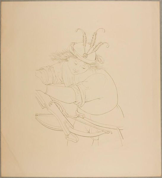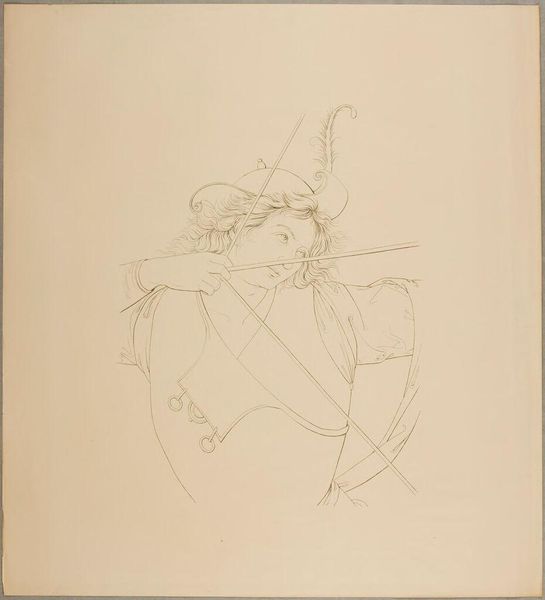 Editor: This is Vincent Brooks' drawing, "Figure," housed at the Harvard Art Museums. It appears to be an unfinished sketch. The archer seems to be inspired by classical antiquity. What can you tell me about this figure, and perhaps the social context in which it was produced? Curator: The classical imagery is interesting, especially considering the time period. I'd speculate that Brooks was referencing earlier artistic traditions to elevate the status of the subject, thereby aligning the figure with established notions of beauty and power. How does that interpretation sit with you? Editor: I hadn't considered the intent to legitimize or empower the subject. That adds a layer of political meaning I hadn't seen. Curator: Indeed. This piece reminds us that even seemingly straightforward drawings can reflect complex social and cultural considerations, raising questions about power structures and artistic conventions. Editor: Absolutely, I'll definitely keep that in mind moving forward. Thanks!