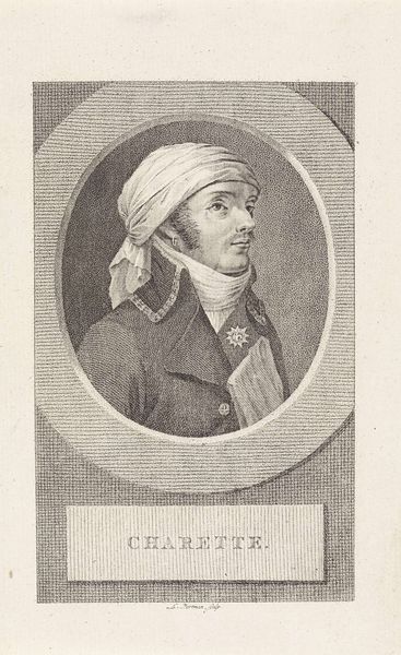 Curator: Looking at "Portret van Van Houten," a pencil drawing created around 1797, I'm immediately struck by a certain severity. The cool gray tones and the tight, controlled lines create a reserved and perhaps even stoic mood. What’s your impression? Editor: There is indeed a captivating stillness in this portrait. This piece, by Johannes Cornelis Mertens, captures the essence of a society in transition, reflecting the shifting ideals of the era. Consider how neoclassical aesthetics influenced the portrayal of identity and status during this period. Curator: Exactly! The subject, Van Houten, is framed within this oval, his face rather austere. We should recognize how this drawing fits into the larger framework of Dutch portraiture. The late 18th century was a complex moment. We can read this piece as a statement of power, even resistance, through the conventions of representation. Editor: I concur. Van Houten's garb and bearing resonate with the political and social hierarchies of his time. But let's examine the tension here: this is neoclassical, yet the realistic portrayal of his features grounds it in a specific, palpable reality. How do we reconcile the ideal with the real, and what does this reveal about artistic aims? Curator: That push and pull makes the artwork compelling. Van Houten is rendered as a modern gentleman, ready to usher in a new century, yet his image is still tethered to a certain traditionalism. It is important to situate it in that historical discourse, seeing it as a node in larger narratives of Dutch identity formation and socio-political upheaval. Editor: A fine summary! His clothing suggests a certain rank and authority, but notice how the slight asymmetry of his face introduces an element of individuality that softens the potential for stiffness. And what of the implications of the neoclassical movement more broadly? What sort of cultural project was it advancing? Curator: Overall, reflecting on Mertens' "Portret van Van Houten," I appreciate how the piece encapsulates both individual and collective identity within a precise historical moment. It makes me consider, above all, art’s role as witness and active participant. Editor: Indeed, and it underlines art's potent ability to capture an era through subtle visual cues, raising complex questions about societal roles and expectations that stay with us, inviting continuous discussion and review.