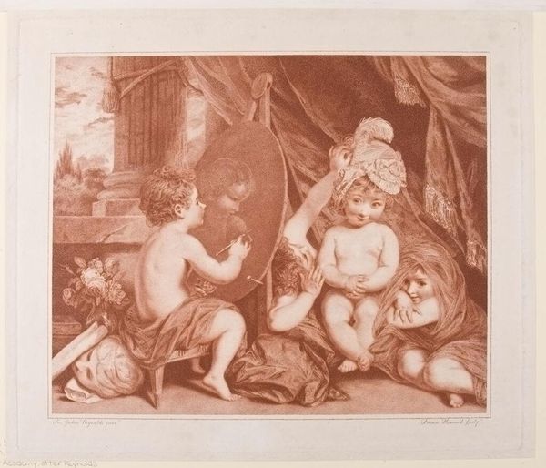 Editor: This is Ferdinand Gaillard’s engraving, Oedipus, at the Harvard Art Museums. I’m struck by the stark contrast and the figures’ placement within the dark cave. What do you see in this piece? Curator: The composition invites close scrutiny. Note how the artist uses chiaroscuro to emphasize the tension between Oedipus and the Sphinx. The linearity and the starkness in shading creates dramatic narrative tension. The bodies themselves, how do you view those in terms of line and form? Editor: Well, the muscularity of Oedipus contrasts with the Sphinx, creating a visual push and pull, a certain symmetry. Curator: Precisely. The artist uses their forms to structure a dialogue, not just between the figures in the image, but between the forms themselves. We see a symbolic struggle rendered structurally. Editor: That's fascinating. I'll never look at it the same way again!