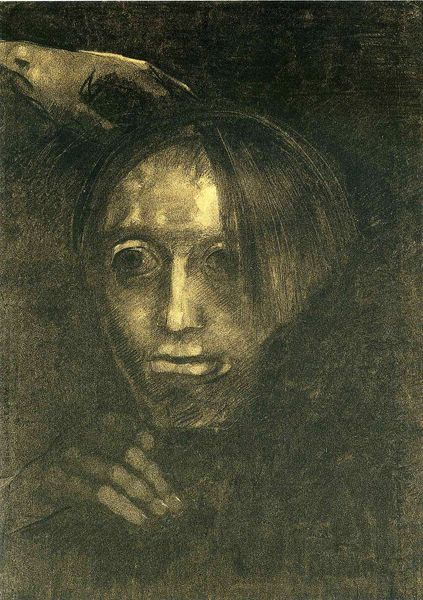 Editor: This is Odilon Redon’s "Photograph of Guardian Spirit of the Waters" from 1878. The artwork, rendered in charcoal, has this haunting quality. It depicts an ethereal face hovering over a seascape. The scale feels unreal. What captures your attention in this piece? Curator: Haunting is a perfect word. It whispers of dreams and the subconscious, doesn't it? This floating head – more a specter than a portrait – reminds me of the inflated heads from political cartoons, you know? Perhaps Redon is playing with the idea of influence, or perhaps even anxieties, weighing down the collective psyche. The small, almost fragile, boat beneath adds to that sense of the human scale against... well, the immensity of something unseen. Does it remind you of anything, a feeling perhaps? Editor: The fragility of the boat really gets to me. It’s like human endeavor facing something much larger. Maybe that feeling of the sublime? Curator: Precisely! Redon often explored these themes, turning inwards rather than outwards. His 'Guardian Spirit' seems less about literal protection and more about the burden of consciousness, the weight of inherited memories…even fears. That single eye staring – it feels all-seeing and vulnerable at once. Do you find comfort in its watchfulness, or unease? Editor: Unease, definitely. Like it knows something I don’t. It also seems to have Romantic roots with that vast sea beneath the floating head! Curator: A keen observation. And I concur. He transforms the Romantic impulse into something deeply personal. It makes me wonder if he viewed this Guardian spirit as the inner voice to overcome or succumb to. What about you? Editor: I didn’t even think about it that way before. The inner voice might be a good representation of its meaning for me now. Curator: I love how art continues to change and speak through our contemporary perception. Editor: Absolutely. I learned so much during this tour, so thank you.
