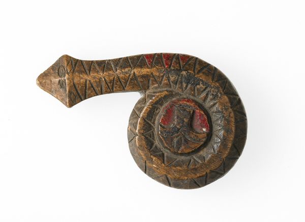 Editor: This terracotta fragment, dating back to 570 BC, once formed part of a krater, a bowl for mixing wine and water. Sophilos is believed to be the artist. It's fascinating how such a small piece can still feel so evocative. What stories do you think it holds? Curator: What grabs me is how this seemingly simple fragment serves as a potent reminder of cultural memory. It’s just a piece, but loaded with symbolism from its era. Look at the figure; possibly a satyr or someone in revelry? The repetition of forms along the top edge creates a kind of rhythmic visual language. It speaks volumes about ancient Greek visual culture, doesn't it? Do you recognize other forms or figures? Editor: I see some markings; are those figures or just decorative elements? Curator: They could be letters, perhaps even part of a signature, but that matters less to me than understanding how such forms became instantly recognizable to people living then. They would have decoded it effortlessly based on cultural familiarity, sort of like we instantly recognize brands today. It shows how deeply ingrained imagery is in shaping cultural identity, and communicating beliefs and narratives. The continuous lines and forms… the iconography served a specific social and even psychological function. Editor: So it’s not just about the image itself, but what the image meant to the people who created and viewed it? Curator: Exactly! What stories did these images evoke? What rituals or beliefs did they reinforce? Fragments like these aren't just broken pieces; they are keys to unlocking a shared past. The vessel had purpose beyond containment – it shaped communal experiences and identity. We are still looking for fragments, putting together stories, isn’t it? Editor: That’s so interesting. It changes how I see not just this piece, but all art from the past. Thanks for illuminating the cultural significance embedded in the symbols.
