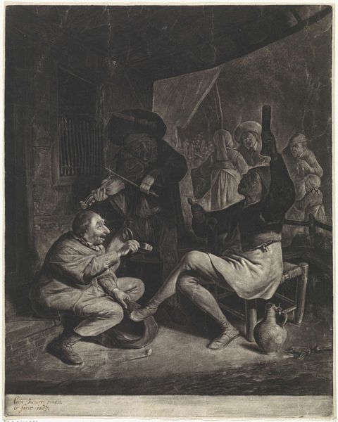 Willem de Broen made this print of peasants playing backgammon sometime between 1686 and 1748. The scene is humble, depicting a group of men gathered, most likely at a local inn, and deeply engrossed in their game. The print offers a window into the leisure activities of the Dutch working class during the 18th century. It shows the role of social spaces like inns in community life, where people gathered for entertainment and camaraderie. De Broen’s detailed rendering provides insight into the clothing, posture, and expressions of his subjects. The inclusion of details like the simple furniture, the clay jug, and the overall rustic setting, all paint a picture of everyday life in the Dutch countryside. The text beneath the image tells that men gamble, but this gambler has lost everything. The print is a social commentary on the lives of ordinary people during the artist's lifetime. Historians often turn to similar prints to better understand the daily routines, values, and social structures of past societies. By looking at how people spent their time and resources, we gain insight into their social values and cultural norms.
