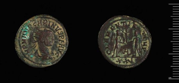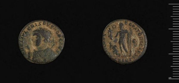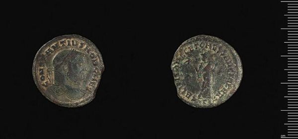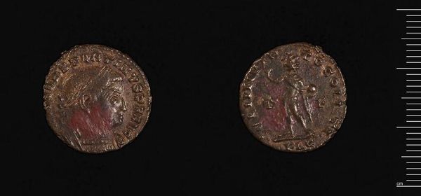 Curator: Here we have a Follis of Licinius, Heraclea. It's from the Harvard Art Museums. Editor: Wow, it feels so ancient. The patina just whispers stories. It's like holding a tiny, weathered world. Curator: Indeed. This coin, attributed to Licinius I, served both as currency and as a propaganda tool, emblazoned with imperial imagery. Editor: Look at the crisp profile on one side – all authority and stern pronouncements. And on the reverse, a figure with what looks like a standard. Curator: Precisely. These images and inscriptions are carefully constructed to convey power and legitimacy. Editor: I love how something so small can carry such weight. It's a tangible connection to a distant past, isn't it? Curator: Absolutely. This coin offers a glimpse into the political and economic landscape of its time. Editor: Makes you wonder who last held it, doesn't it? Another story to ponder.