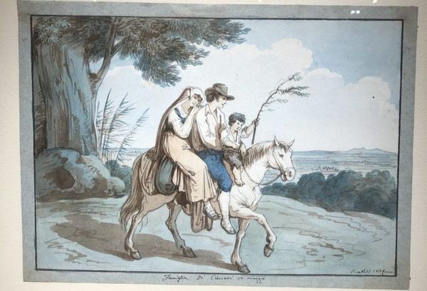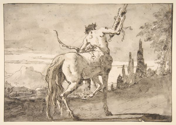 Editor: Here we have Eugène Delacroix's "The Education of Achilles" from 1862, done with pastel. The colors create a somber tone. What catches my eye is the juxtaposition of this mythical scene rendered with such tangible materials. What's your take? Curator: It’s crucial to consider Delacroix’s choice of pastel. This wasn't high art. Pastel was aligned with *artisanal* craft. How does the rapid, almost sketchy application of pigment shape your understanding of this mythological moment, rather than say, a highly rendered history painting in oil? Editor: I suppose it feels less about celebrating a hero and more about the immediacy of a lesson, almost as if it's documenting a process. Does that link to a social reading somehow? Curator: Precisely. Delacroix is challenging conventional hierarchies. By elevating pastel to depict such a grand subject, he blurs the lines between the academy and the marketplace, between fine art and decorative skill. Consider who consumes pastel works and how that might challenge our assumptions of classical narratives? Editor: So it is more than just showing a myth. Delacroix is doing this by using materials available to him. He almost democratizes access to grand stories through the very stuff he’s using? It feels really subversive now. Curator: Indeed. And what assumptions does the myth of Achilles reinforce or challenge related to the relationship between man and the animal kingdom. Editor: Wow, it’s a different view! Thanks, I appreciate your insight. Curator: It’s fascinating how material choices reshape the reading of familiar stories.