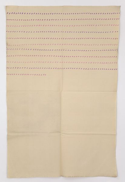 Editor: This is 'Bespanningsstof, jacquardweefsel met patroon van spitsovalen met wingerdranken, goudgele inslag op beige ketting'—or, Upholstery Fabric, jacquard weave with pattern of pointed ovals with wine plants, gold-yellow weft on beige warp. It's textile art by Theo Nieuwenhuis, created sometime between 1920 and 1930. It’s so muted in colour, almost calming in its gentle, repetitive design. What do you see in it? Curator: What I see… is a silent film playing in fabric form. I see the ghosts of Art Nouveau trying to modernize itself after the first world war. The muted tones are fascinating aren’t they? A real step away from the brighter colours often associated with Art Nouveau. Do you see the stylized grape vines and ovals? Editor: I do. The vines are so subtle, almost geometric rather than organic. It’s quite different from the swirling, overtly naturalistic Art Nouveau I'm used to. Curator: Exactly! It’s Nieuwenhuis attempting to hold onto the essence of the style – the appreciation of craftsmanship and natural forms – while simplifying it, stripping it down. It reflects a broader cultural shift after the war, a move away from opulence and towards practicality. Editor: So, it's a kind of… Art Nouveau hangover? Curator: Perhaps! Or maybe Art Nouveau trying to grow up and face a changed world. Look closely—imagine this covering furniture in a stylish home. What feelings do you get? Editor: I see it. A comfortable elegance, something refined but understated. It’s not shouting for attention, but has a quiet beauty. I never considered textiles in this way before – as a reflection of cultural anxieties. Curator: Textiles often speak volumes if you listen closely enough. A beauty sleeps in its delicate texture that connects culture, place, and time.