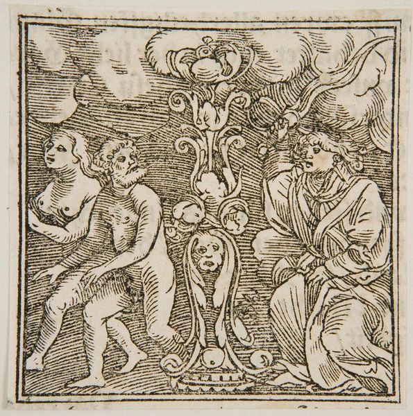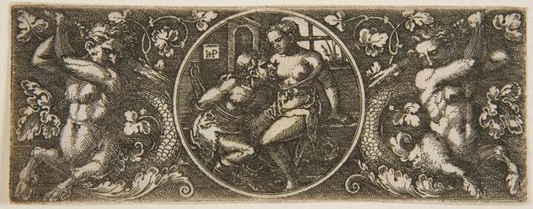 Curator: Well, this is an intriguing piece from the Harvard Art Museums, known simply as "Head-piece" by an anonymous artist. There's a definite sense of playful, baroque fantasy about it, wouldn’t you say? Editor: Absolutely! It feels like a dream pulled from the pages of a very old book. The figure in the center—a kind of allegorical woman, perhaps?—seems to be bursting forth, almost escaping the rigid frame. Curator: Indeed, the "Head-piece," likely designed for placement at the top of a book page, uses engraving to present a figure surrounded by decorative motifs. Consider how prints like this one would have been integral to disseminating imagery and shaping cultural tastes at the time. Editor: And think of the artisan who crafted this so carefully! The crispness of the lines, the depth achieved through hatching… it's easy to forget the skill and artistry that went into even these smaller, seemingly utilitarian works. It feels very precious. Curator: Precisely. And what a wonderful reminder that sometimes, the most compelling art lives not in the spotlight, but on the margins. Editor: I agree. It's a tiny window into another world, whispering stories.
