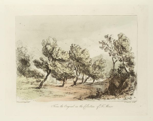 Editor: This lovely landscape by Thomas Gainsborough at the Tate seems to capture a peaceful woodland scene. It’s monochromatic, with a sort of quiet stillness to it. What stands out to you? Curator: This is a pastoral fantasy typical of Gainsborough. Considering the socio-economic context of the 18th century, how do you think this idyllic portrayal of nature might contrast with the realities of agricultural labor and land ownership at the time? Editor: That’s a great point; it does seem idealized. Perhaps it reflects the desires of the elite rather than the lives of the working class? Curator: Exactly. Exploring these contrasting perspectives reveals the artwork's engagement with power dynamics and social hierarchies. These landscapes served as a form of escapism for the upper class, masking the harsh realities of the time. Editor: I never thought about landscape art in that way before; it's fascinating. Thanks for broadening my perspective! Curator: My pleasure. Art is a mirror reflecting society, and understanding its reflections helps us better understand ourselves.