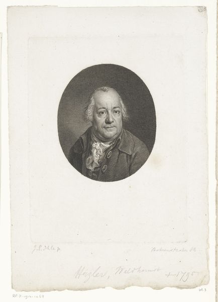 Willem van Senus made this portrait of Jan Frederik van Beeck Calkoen using chalk manner. The circular format and the subject's formal attire are typical of portraiture from the late 18th and early 19th centuries in the Netherlands, a period of significant political and social upheaval. Notice how the artist uses the conventions of portraiture to convey status and respectability. The sitter's powdered wig, elaborate cravat, and fur-lined coat signal his social standing, and the oval frame creates a sense of classical refinement. But, beyond the surface, what does this image tell us about the sitter's role in society? Who was Jan Frederik van Beeck Calkoen? Was he part of the ruling elite, or was he a member of the emerging middle class? As an art historian, I would want to investigate the sitter's background and the artist's patronage networks to fully understand this portrait's social and cultural significance.