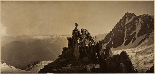 Editor: Here we see "Chamounise, Le Mauvais Pass," a photograph by Francis Frith. The climbers look so vulnerable against the immensity of the mountain. How would you interpret this work? Curator: It's compelling to consider this image within the context of 19th-century societal shifts. What role did photography play in shaping perceptions of nature and exploration during this period? Editor: It brought it to the masses, but also feels very posed. Was this about adventure, or selling an idea of adventure? Curator: Precisely. These images popularized mountain tourism while simultaneously reinforcing notions of human dominance over the natural world. It reveals a complex power dynamic. What do you think? Editor: I hadn't considered the power dynamics, but now I see how the image is less about nature and more about society. Curator: Exactly, and that critical perspective is so important to appreciating the social impact of the work.