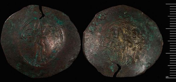 Curator: Here we have a Byzantine trachy, specifically one of Manuel I from Constantinople, part of the Harvard Art Museums collection. What's your initial take? Editor: It feels weighty, not just in mass but in history. The worn details suggest countless transactions, a tangible link to a very different societal structure. Curator: Absolutely. These coins weren't just currency; they were tools of power. Manuel I used them to project his image and legitimacy. Consider the symbolism—likely imperial and religious imagery—carefully chosen to reinforce his authority. Editor: The images are so debased, it's difficult to recognize anything. But the very fact it survived speaks volumes about its inherent cultural and psychological importance to that society. Curator: Indeed. It underscores how even everyday objects can become potent symbols of identity and control within specific socio-political climates. Editor: Seeing this, I'm left pondering what future generations will make of our own symbols of power and wealth. Curator: A sobering thought, and a testament to the enduring power of objects to tell stories across time.