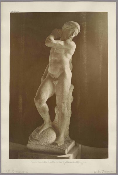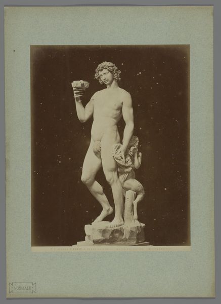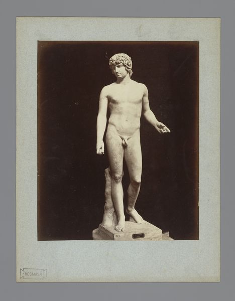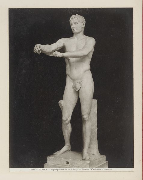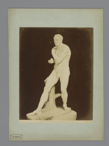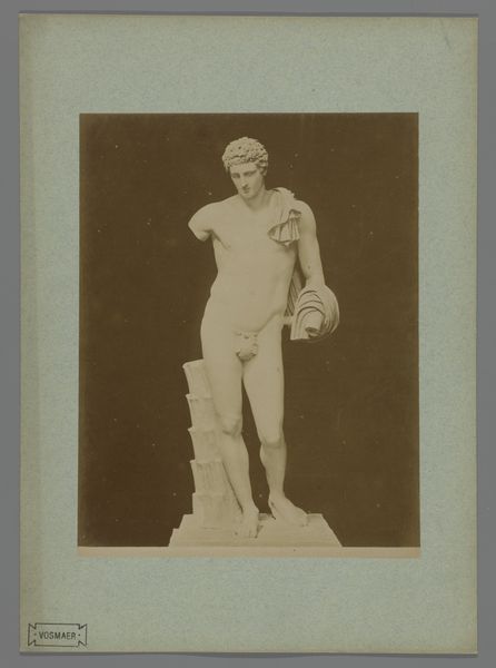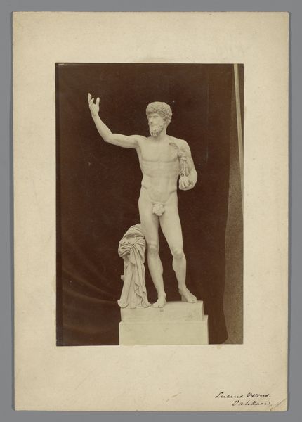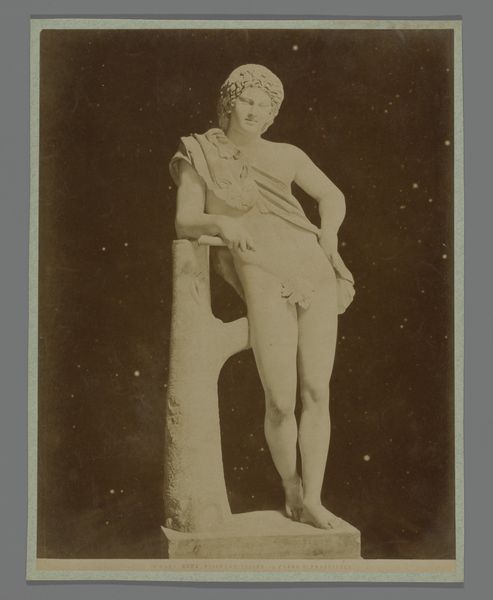 This is a photograph of an antique statue, likely made in the late 19th century by an anonymous photographer. The process of creating photographic prints like this one involved labor, politics, and consumption. First, a glass negative was made, itself a painstaking process involving toxic chemicals and careful timing. From this negative, prints were made, each one requiring skill and attention. The photographer, though anonymous, would have been part of a growing industry of image-making, driven by the demands of art institutions and collectors eager to document classical sculpture. The act of photographing sculpture makes it more portable, and therefore available for wider distribution. Ultimately, this photograph challenges our traditional understanding of art. It is a carefully crafted object, made through a complex process, yet often overlooked in favor of the sculpture it depicts. By focusing on the photograph itself, we recognize the skilled labor and social context that shaped its creation.